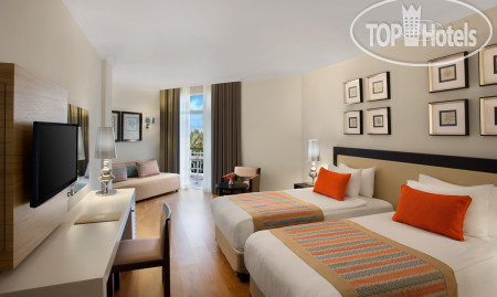 По минусам - горничные работают плохо, могут забыть что то убрать, не докладывают мыло/гели/бумагу. Могут забыть донести что то в мини бар. Халаты выдают только повторным гостям, тапочки всем.