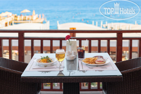 Пляж прекрасный, пирс, всё чисто, заход галечный. Море красивое, бирюзовое, прозрачное до буйков. Раньше на пирсе был бар, сейчас его нет. Бич бой помогает с зонтами и лежаками. Лежаки на море не очень удобные, плетеные, местами впиваются. Пляж зонирован на курящую и некурящую зону, также в ресторане. В пляжном баре бутылочное и разливное пиво, орешки, чипсы, мороженое рожки и упаковки,коктейли и крепкий алкоголь,кондитерская.Также недалеко снэк бар, по меню. Пекут лепёшки гезлеме, отдельное кафе.